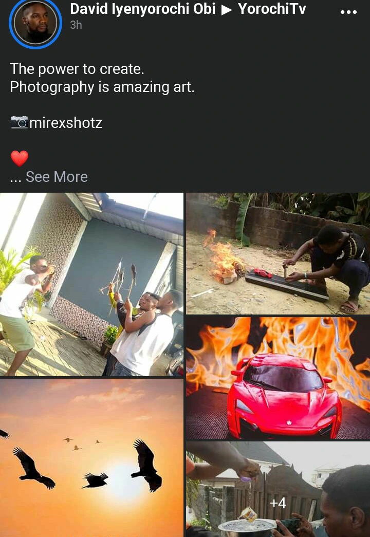 In my article today, I will be sharing with you some beautiful photos I came across on Facebook today and these pictures has got Facebook buzzing. The pictures was shared by a Facebook user identified as David Iyenyorochi Obi and he captioned it with "The power to create. Photography is an amazing art."