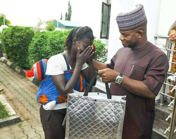 Being diligent in whatever you do has an inevitable reward, no matter how long it takes, the reward will always meet you. The lady in picture got her reward of diligence even in the face of wants and deprivation when the governor of Kogi, Alhaji Yahaya Bello became the messenger that was sent in delivery of this woman's reward.