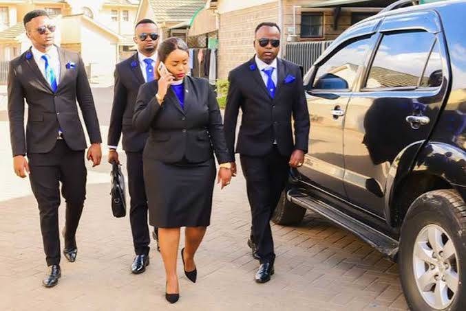The fact is that she is beautiful and adding to the swag, she chose for herself some handsome set of men as bodyguards.