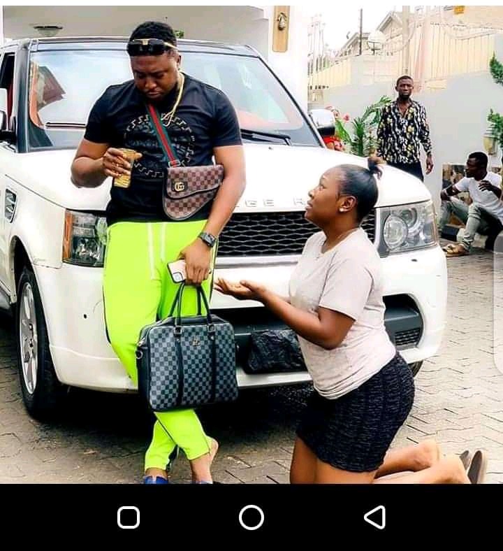 Presently, a picture is circulating on social media. This picture shows a girl kneeling down while asking her boyfriend for forgiveness. As can be seen from the picture, the said boyfriend is unconcerned about the girl's feelings. He is adamant about what the young girl is saying.